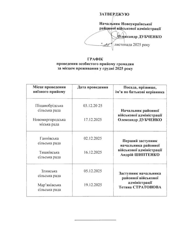 ГРАФІК проведення особистого прийому громадян за місцем проживання у грудні 2025 року