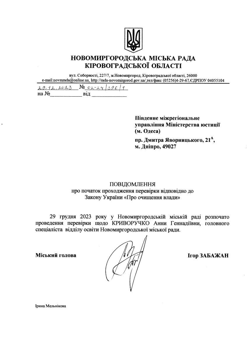 КРИВОРУЧКО А.Г. - головний спеціаліст відділу освіти Новомиргородської міської ради