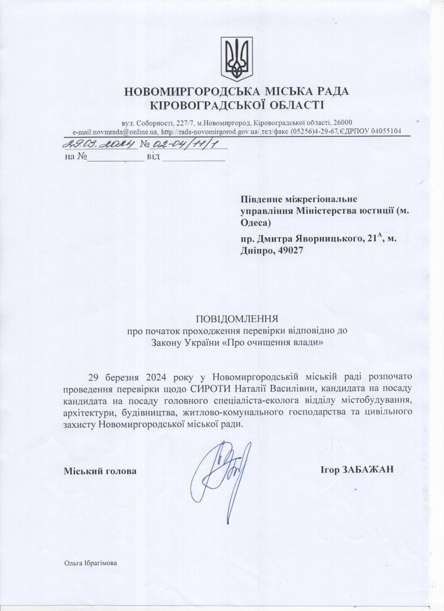 Новомиргородський відділ Новоукраїнської філії Кіровоградського обласного центру зайнятості