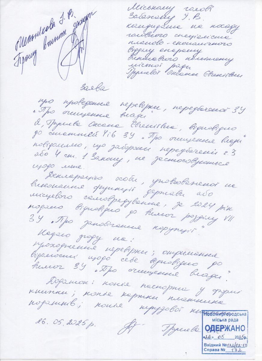 ГРУШЕВА О.Є. - головний спеціаліст планово-економічного відділу апарату виконавчого комітету міської ради