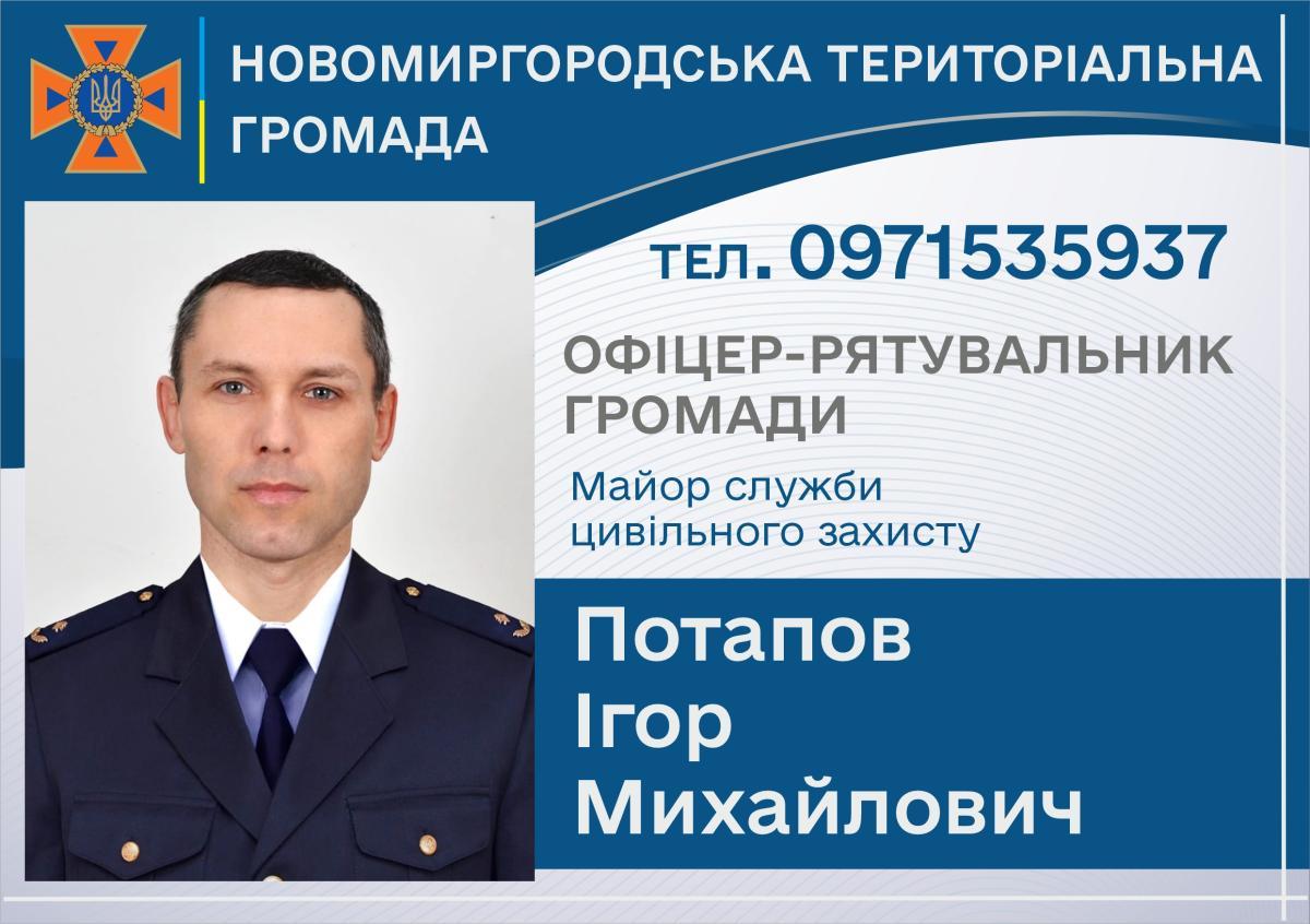 З безпекових питань звертайтеся до офіцера-рятувальника вашої громади за вказаним номером телефону!