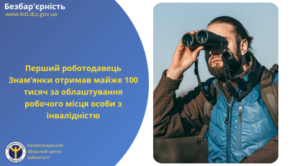 Сподіваємось, що ця історія стане прикладом для інших роботодавців, адже створення безбар'єрного середовища у сфері зайнятості осіб з інвалідністю, пристосування робочого місця до певних потреб працівника, облаштування робочого місця спеціальними та допоміжними засобами для працевлаштованої особи з інвалідністю дозволить таким громадянам повноцінно соціалізуватися у суспільстві.