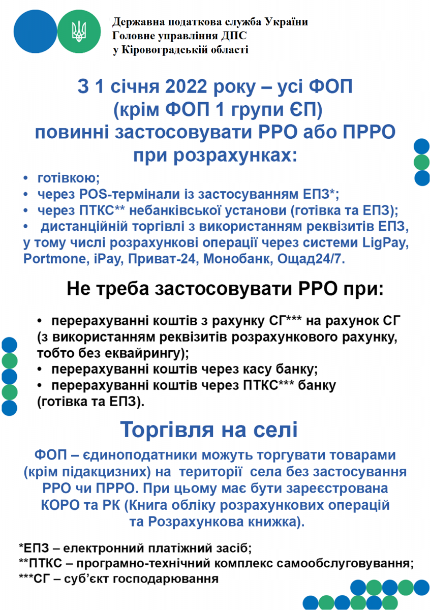 Про застосування РРО/ПРРО та ведення обліку товарних запасів з 1 січня 2022 року